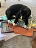 Our cat is very skittish, Katie sat patiently allowing him a chance to meet her a couple times, she sought out photos even when he was distant.