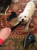 Marne is very nice and easy-going. My little dog is always a bit anxious around other dogs, but she seems comfortable with their big and friendly Black Lab. She seems happy when I pick her up.