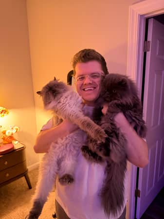 Sawyer was prompt and communicative. Managed to get pictures of both cats on almost every visit, and one likes hiding away. At least one of my girls enjoyed having Sawyer as a sitter! 😅 (the other hides from everyone!!)